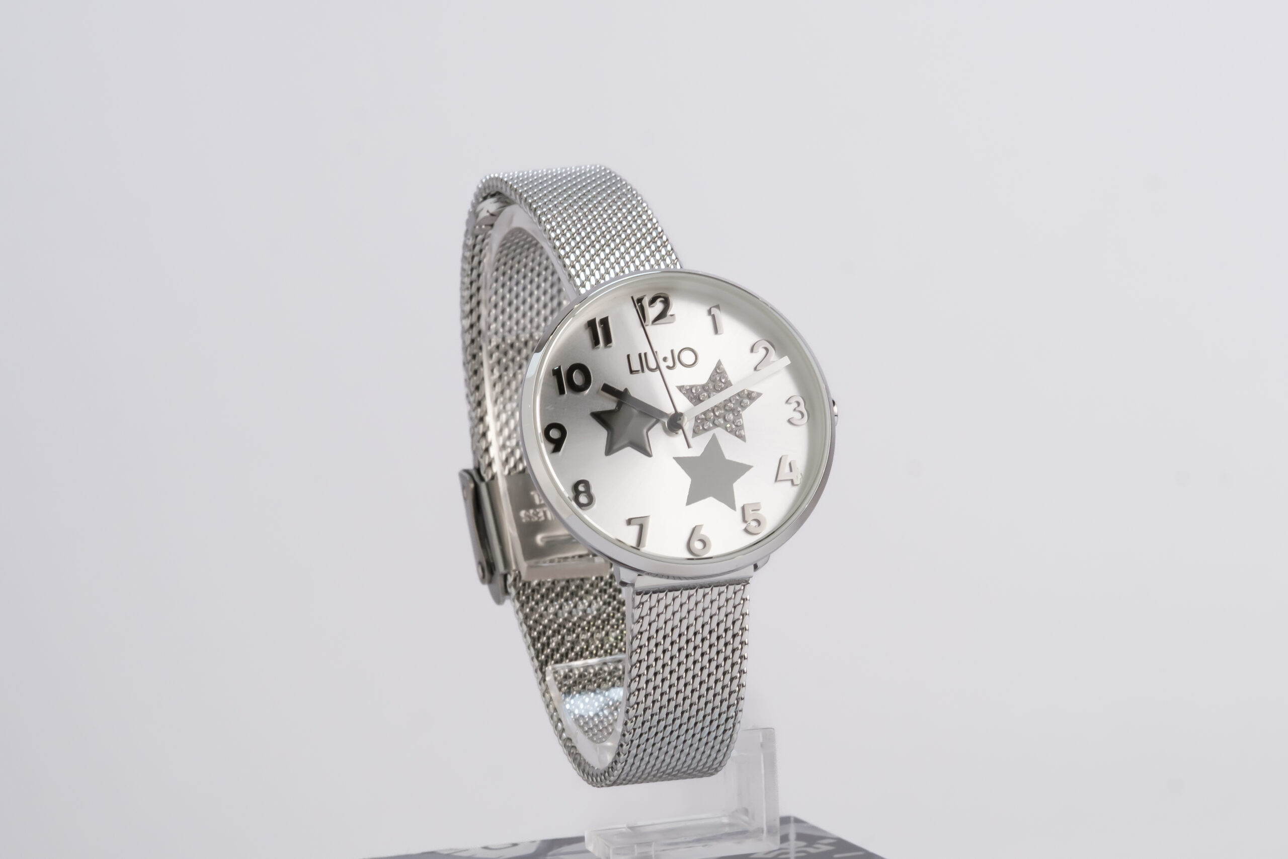 Orologio LiuJo della collezione Complicity. Orologio da donna Solo Tempo in Acciaio. Quadrante Argento con stelle. La cassa è color Bianco-Argento. Cinturino in Acciaio. La resistenza all’Acqua è 3 atmosfere. Il Movimento È Cal.2036.