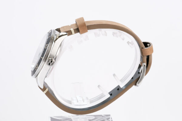 Orologio Spinnaker Croft Mid-Size da uomo con cassa in acciaio inossidabile dal diametro di 40 mm, cinturino in pelle marrone con chiusura ad ardiglione e vetro zaffiro. Resiste all’acqua fino a 15 atm (150 m).